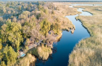 The Okavango Delta in Botswana is a swampy inland delta formed where the Okavango River reaches a tectonic trough in the central part of the endorheic basin of the Kalahari. All the water reaching the delta is ultimately evaporated and transpired and does not flow into any sea or ocean.