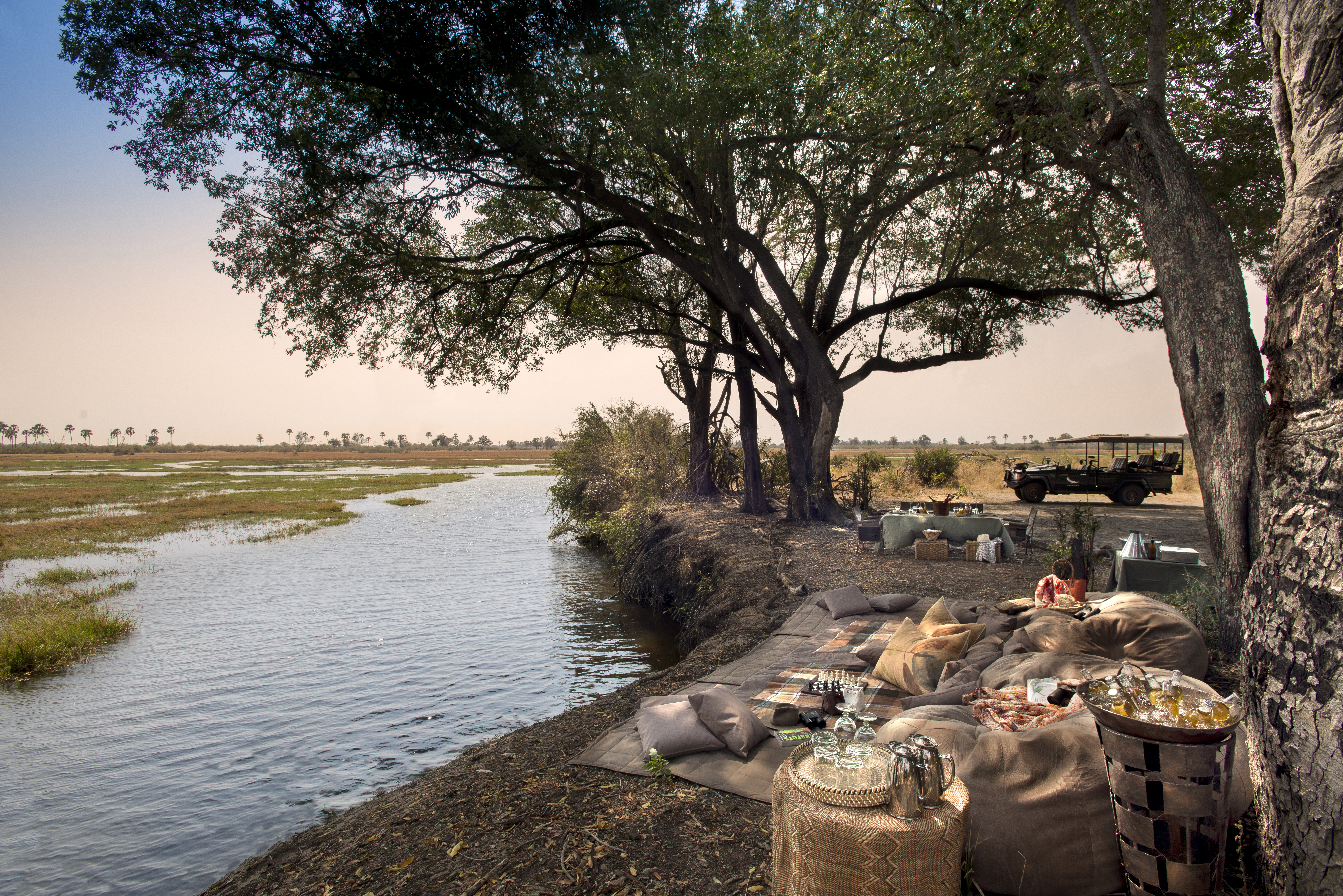 Delta tree-line silhouettes. The camp