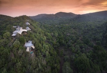 Booked either for sole-use or on a room-by-room basis, the intimate Zuka Lodge is sheer, cool Comfort. Everything guests need is right within reach –comfortable library, sitting room with fireplace, swimming pool and four separate bush cottages. The garden lawn ends in a popular watering hole that entices many a four-legged visitor. Guests can choose to join the group in a generous sitting room or indulge in laid-back moments in the private sitting area of their cosy bush cottage. At the end of the day, an oversized bathtub awaits in the middle of a circular stone bath chamber.